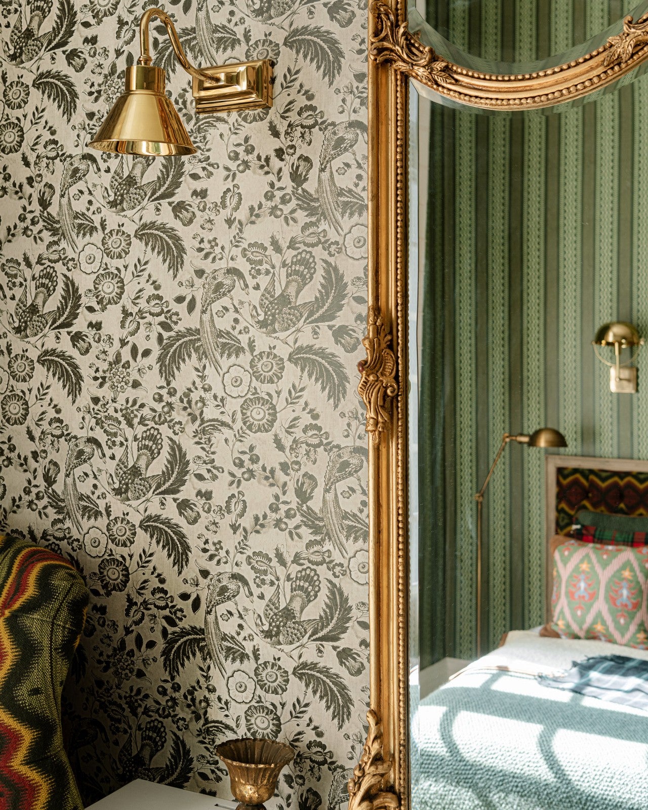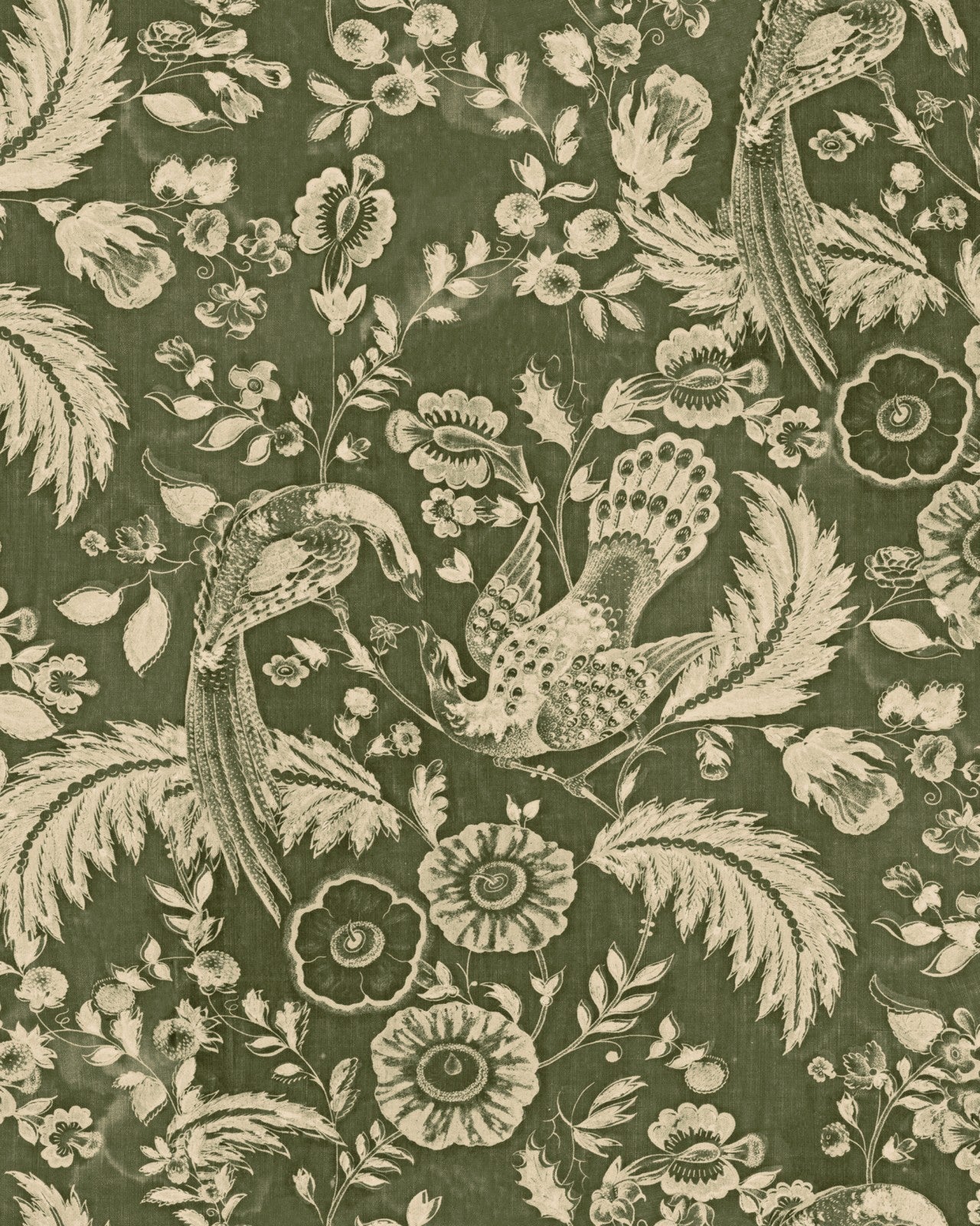 Like a classic wallpaper print, this immaculately drawn design is light of touch yet full of character. Exotic birds with elegant, feathered tails dance and swoop among a carpet of delicate flowers and foliage. A stylish timeless wallpaper design that transports you back to the elegance of the Tyrolean high-end interiors.