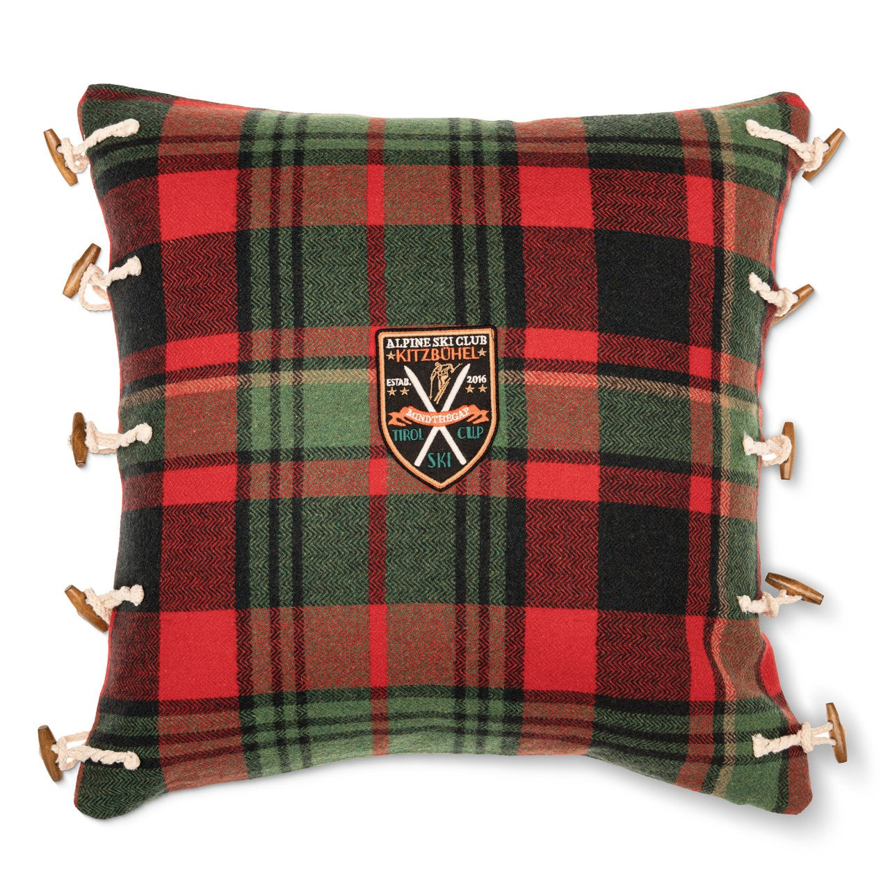 Cosy and colourful, the TYROLEAN PLAID cushion is the ultimate in mountain chic. Made of the finest Italian wool fabric, the cushion is decorated with ten characterful wooden toggles and a stylish embroidered patch to create a premium look accessory. The traditional style checked pattern is a must for any alpine style interior.