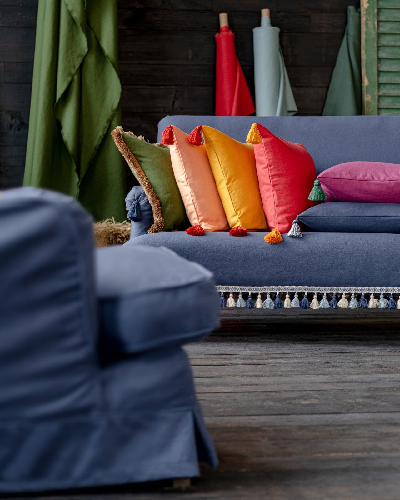 Get lost in the alluring magic of WASHED INDIGO Linen, a dark blue hue which creates the perfect backdrop to style our playful patterns and vibrant colours with. For a sophisticated aesthetic, pair with patterns and fabrics of deep red or green for added grandeur. Versatile and soft, this night-sky inspired linen also has a subtle tactility which adds an organic texture into the room.