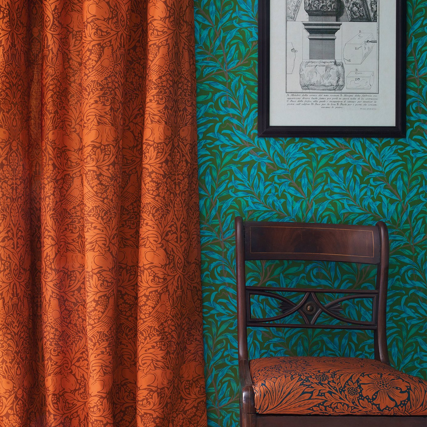 We love this amazing interpretation of our Willow Bough fabric, originally designed by William Morris in 1887. Coloured by Ben Pentreath, richly saturated combinations introduce a new perspective to the patterns timeless entwining stems and delicate willow leaves. Produced on a cotton/linen blend, this design looks fantastic on furniture. Choose from the warm, inviting red of Tomato, the fresh country style of Sky, or Bens statement Olive/Turquoise colourway.
