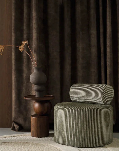 Inspired by fauna, the velvet stripes become more sophisticated when combined with a finely woven stripe in the weft.. ZEBU is a double-sided velvet with a viscose pile. It comes in a range of shades to coordinate with OCEMA.